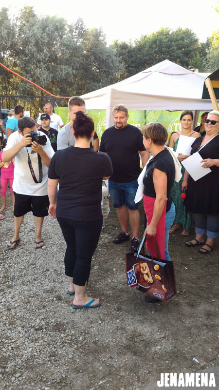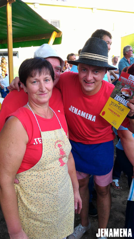 Jenamena kuharska ekipa v sestavi Marija in Martin Hanc kot glavna kuharja in Damijan Hozjan kot kurjač se je v sredo, 3. avgusta 2016, udeležila tekmovanja v kuhanju bujte repe na Pomurskem poletnem festivalu v Veliki Polani. Repa, ki so jo ponudili obiskovalcem, je bila že tradicionalno odlična in jo bo naša kuharska ekipa letos kuhala tudi na Jenamena fest-u. Kuharje je spremljala tudi močna spremljevalna ekipa rdečih jenamena majic. Imeli smo se krasno. Čestitke kuharski ekipi, ki je prejela priznanje za sodelovanje, in hvala vsem, ki ste nas prišli pozdravit in spodbudit na našo stojnico. Se vidimo kmalu na Jenamena festu …
